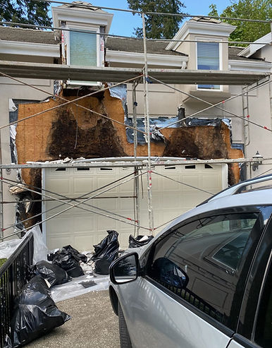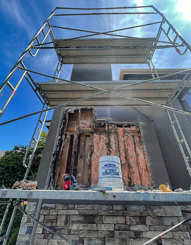 This project breathed new life into an old home, with fresh stucco neatly masking all traces of repairs and making the architectural details really stand out. The building looks young and well-tended again.