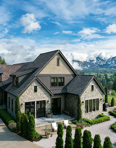 Cedar siding and stone are a perfect match in this riverside home by the wood with an adjacent recreation area for extra coziness. Designed with a finishing touch from the Lochwood-Lozier Custom Homes team.