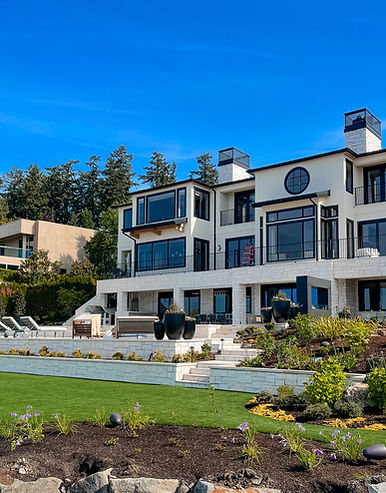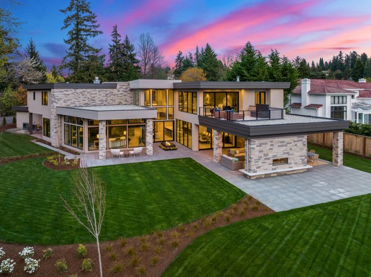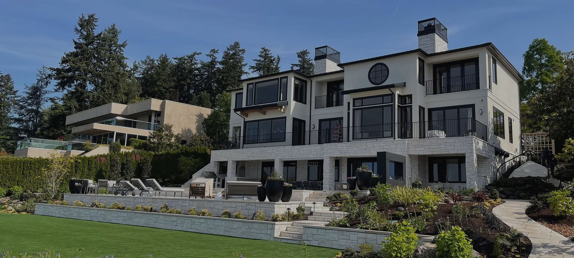 The country residence in Snohomish features a duet of smooth stucco and natural stone, which heighten the clear geometry of the underlying volumes and create an extremely elegant and cozy appeal.