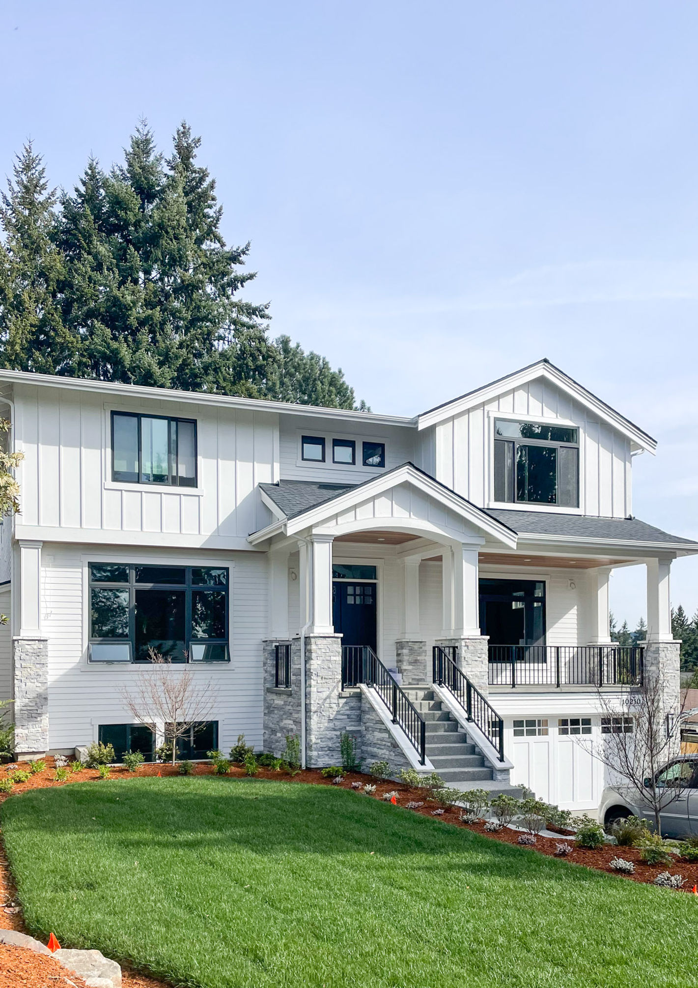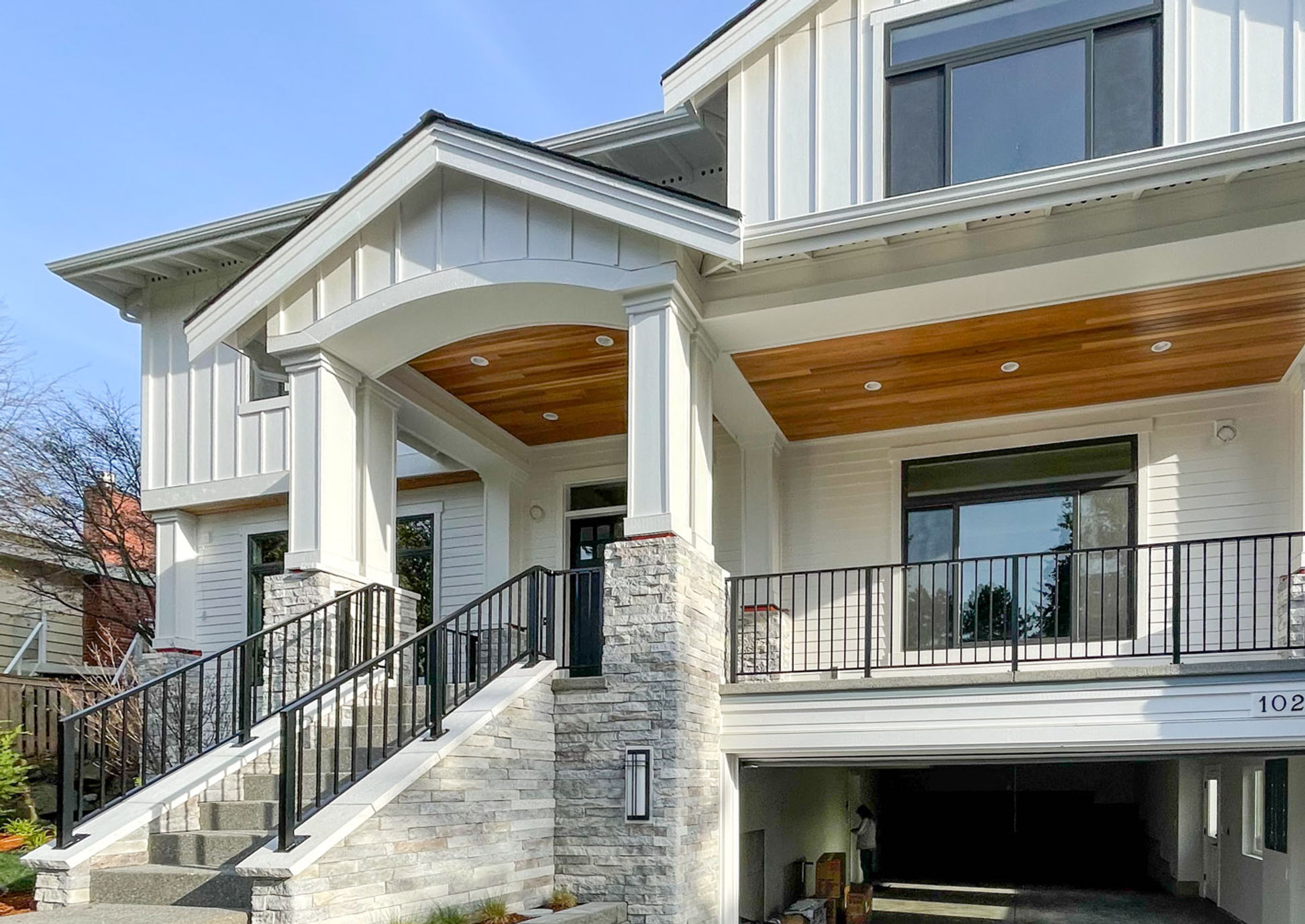 A joint project with John Buchan Homes, this is an exemplar of traditional style. Dark brick and light siding are a play on contrasting textures that gives an added prominence to each architectural detail.