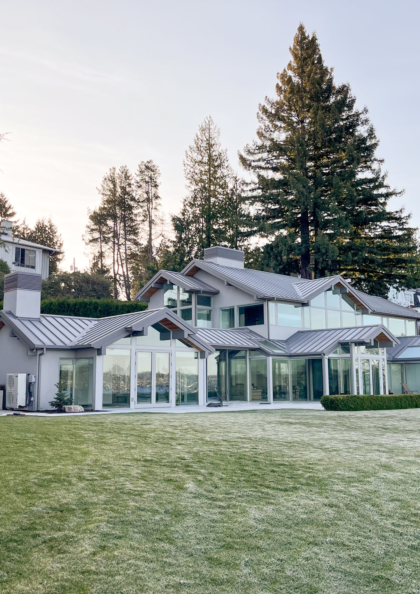 When the lights turn on in the evening, the natural stone on the facade comes alive: The soft light bathes the strict outlines and architectural details, and the home seems to whisper, “It’s safe and quiet here.”