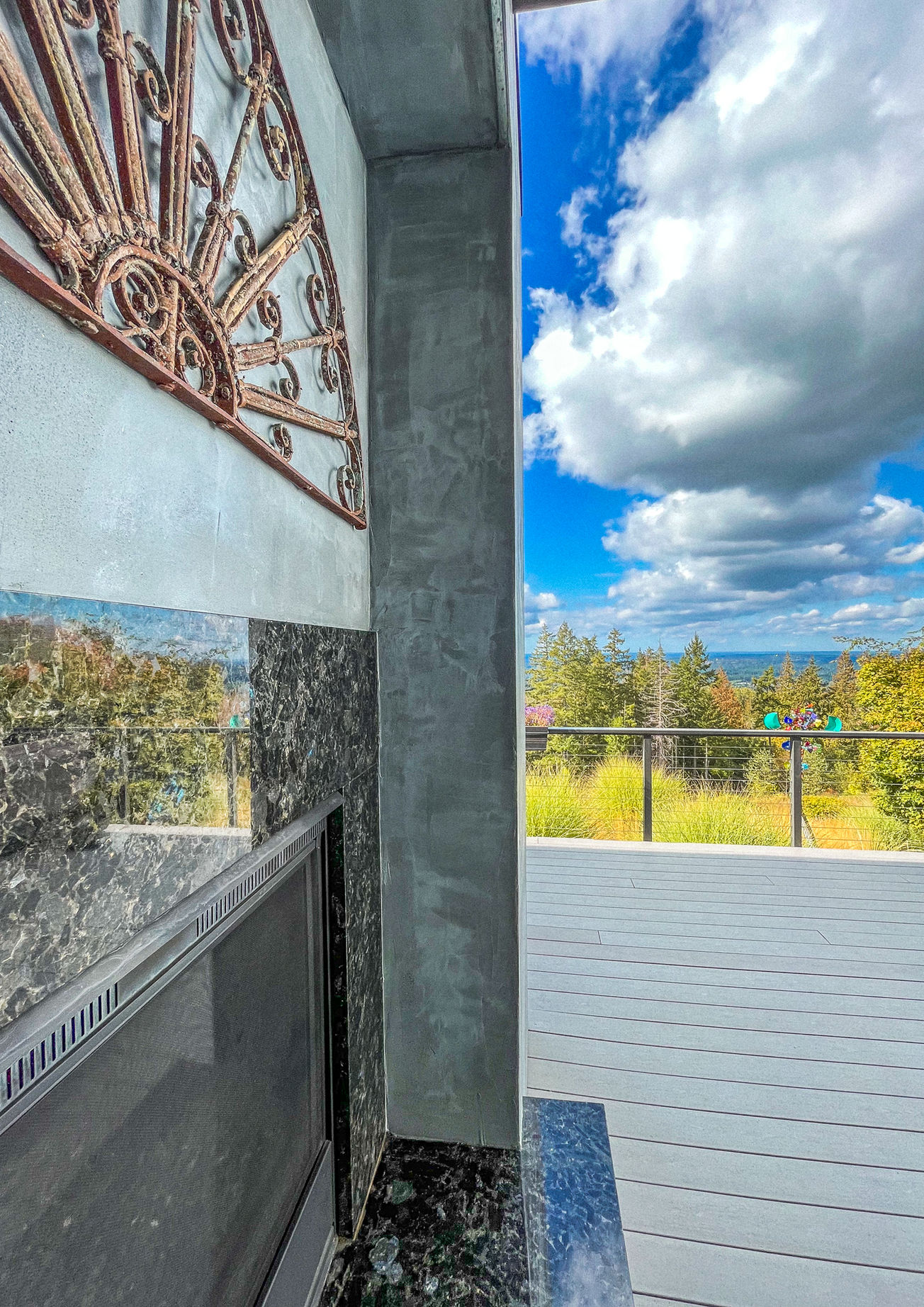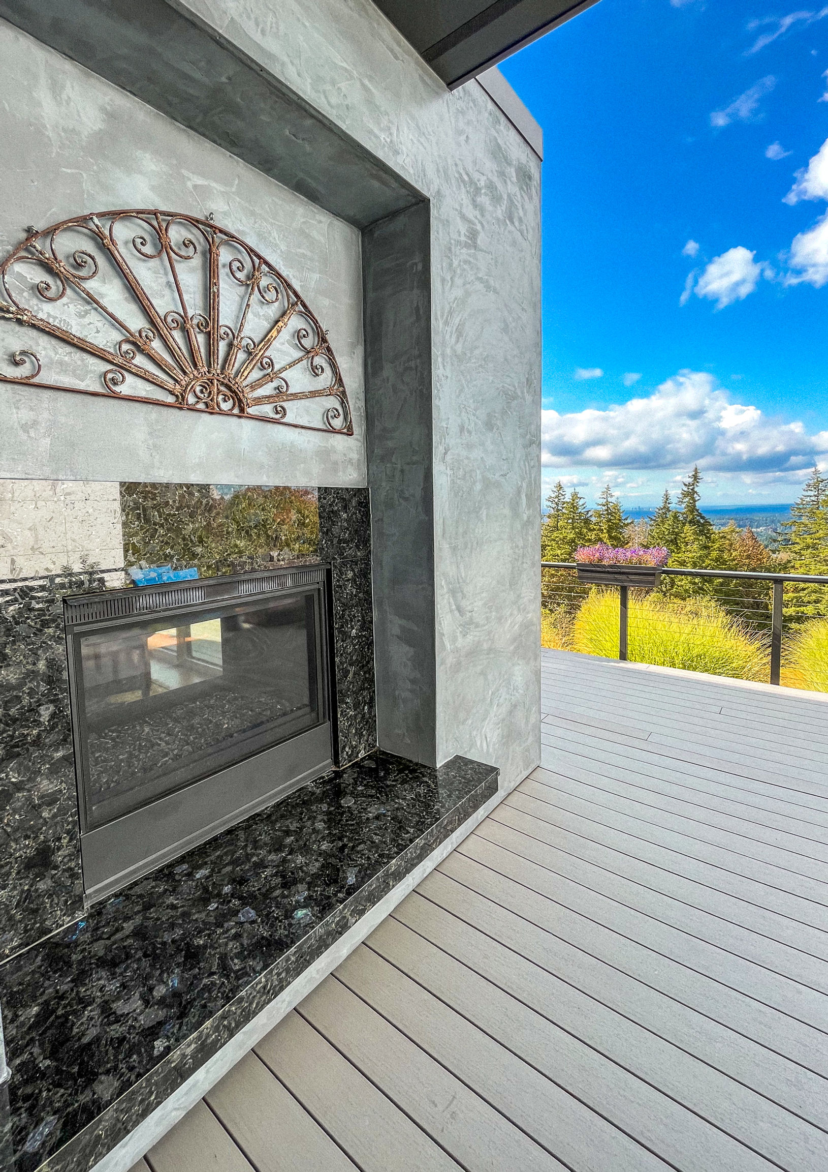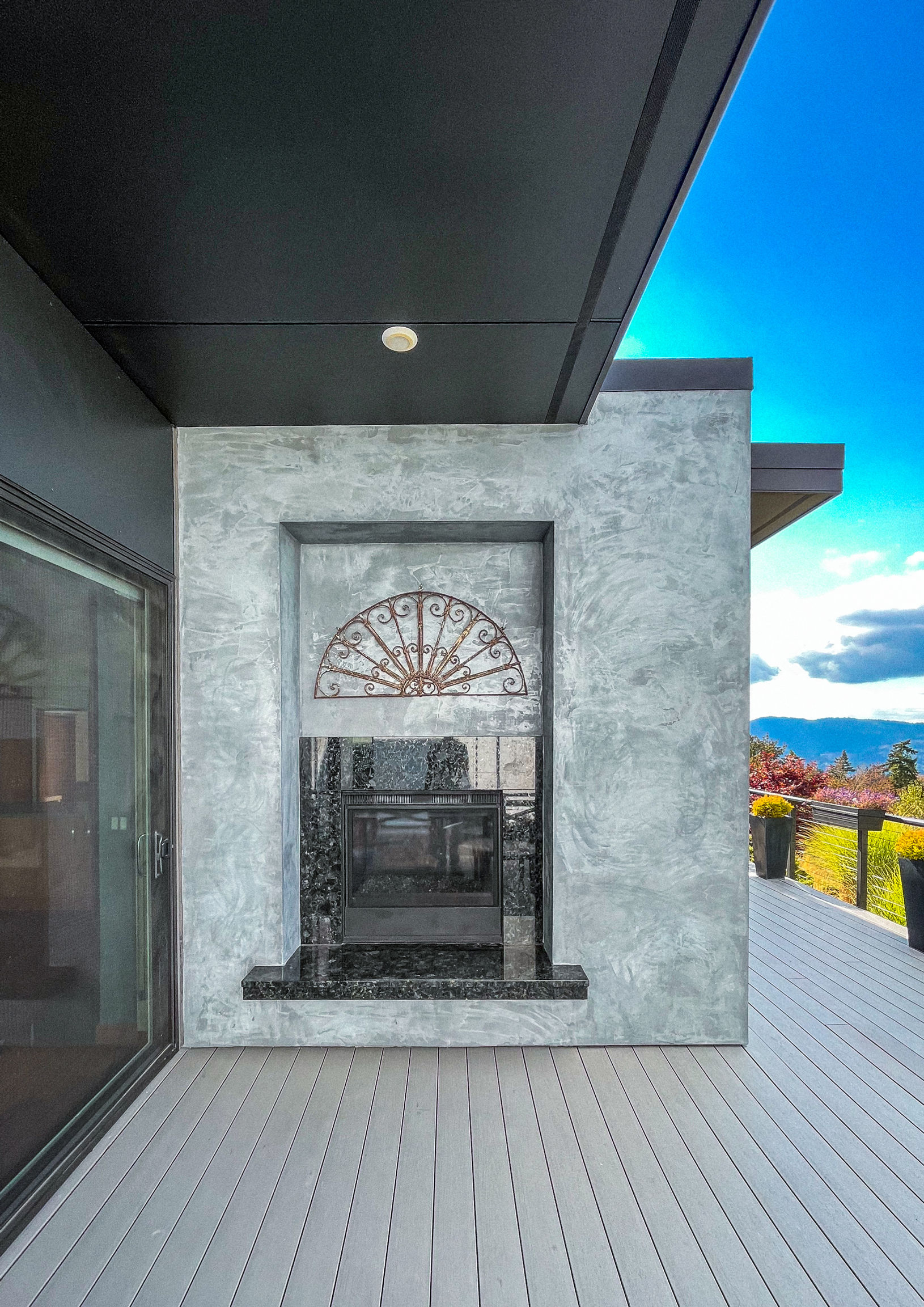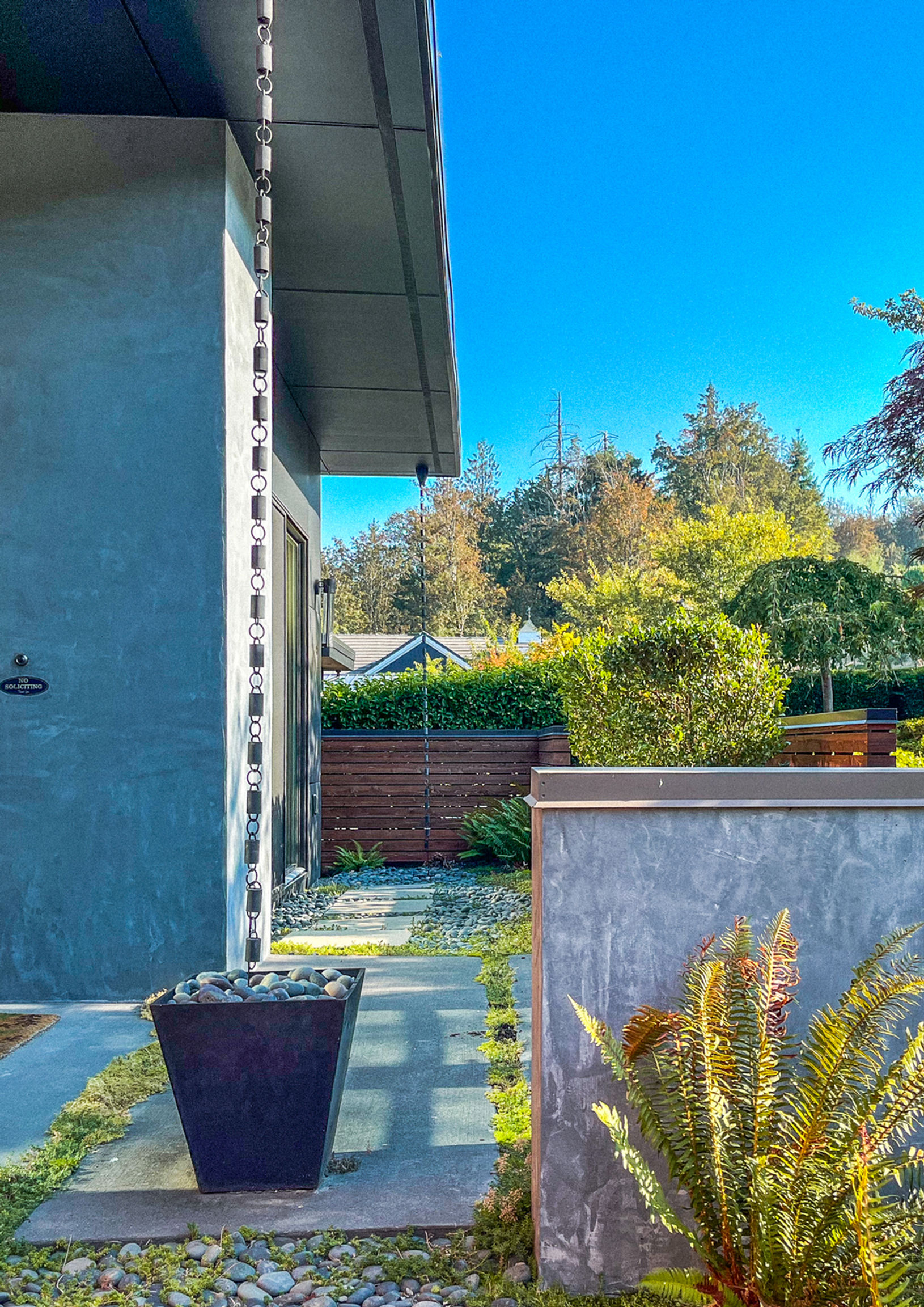 The facing of this cube-shaped home uses the Europlast material and K2 Stone. The clear lines, cedar siding and natural textures shout in unison, “There it is, modern style in all its glory!”