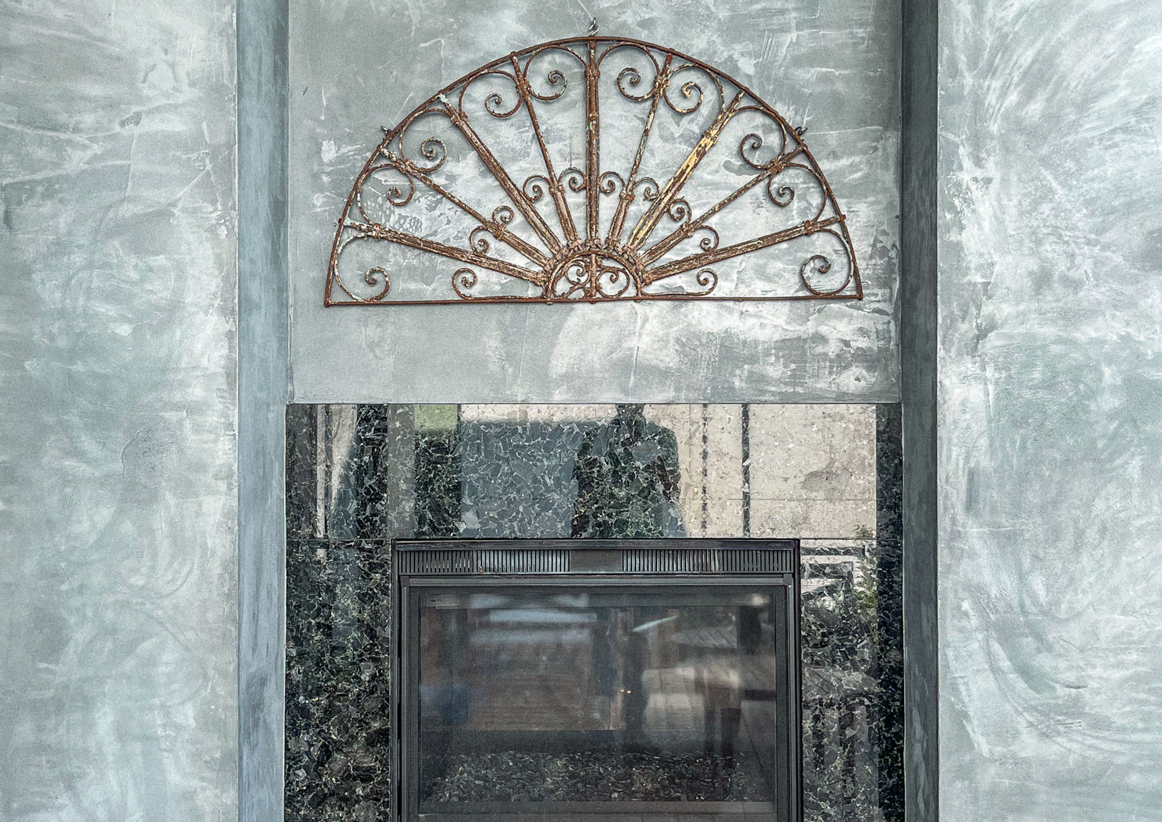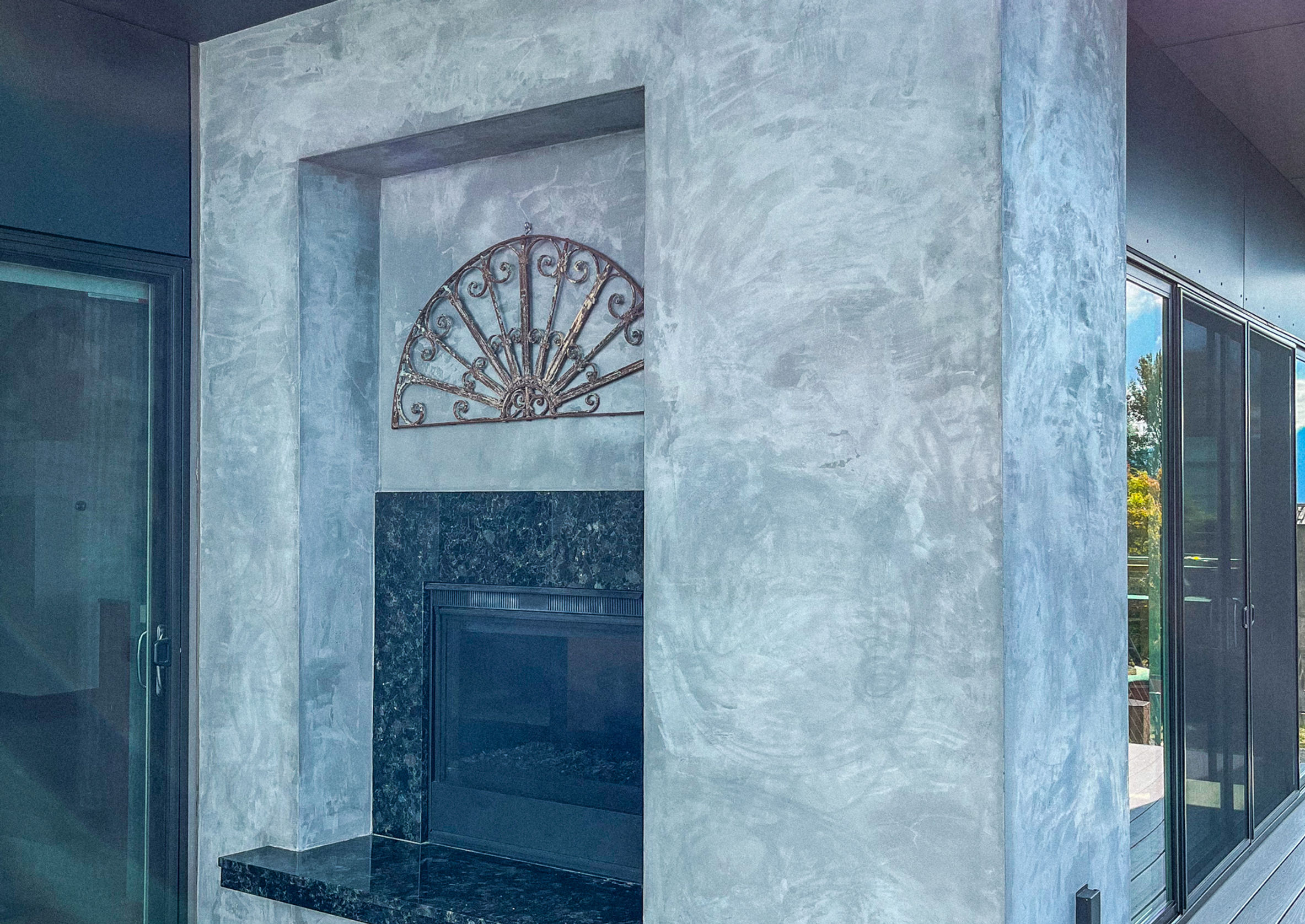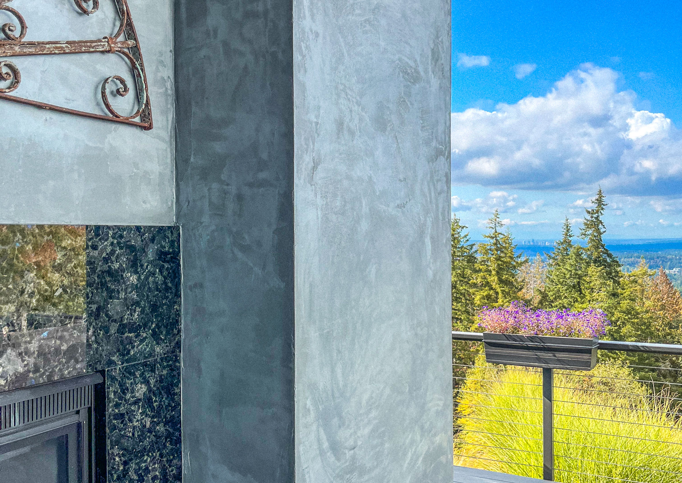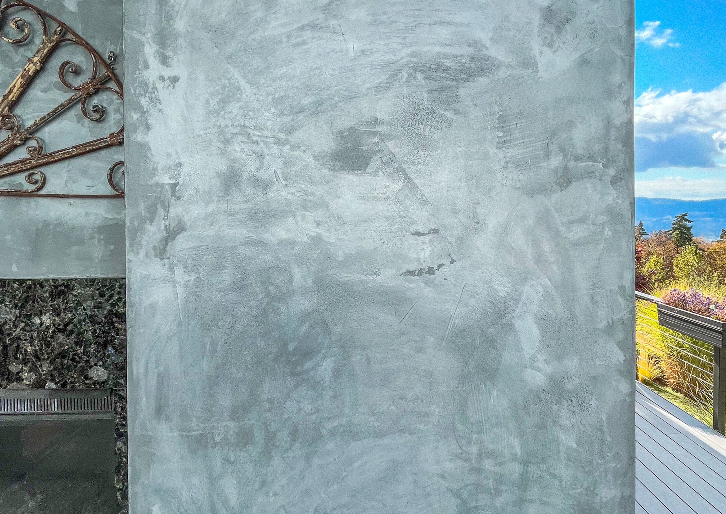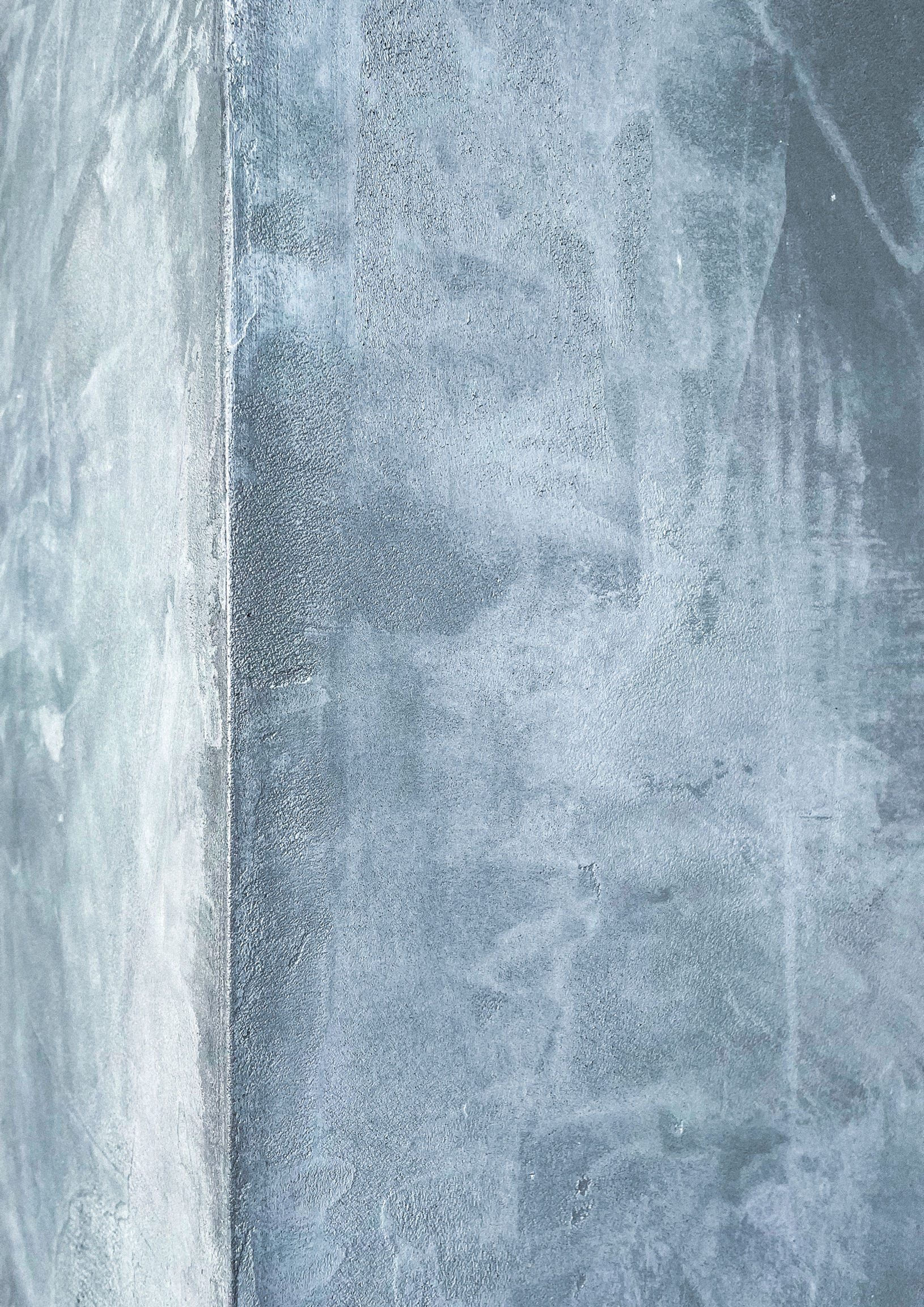 The shower room walls are covered with decorative stucco specially designed for areas exposed to moisture. This seamless monolithic finish for bathrooms is modern, practical and visually appealing.