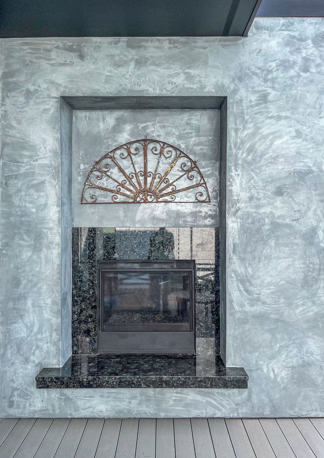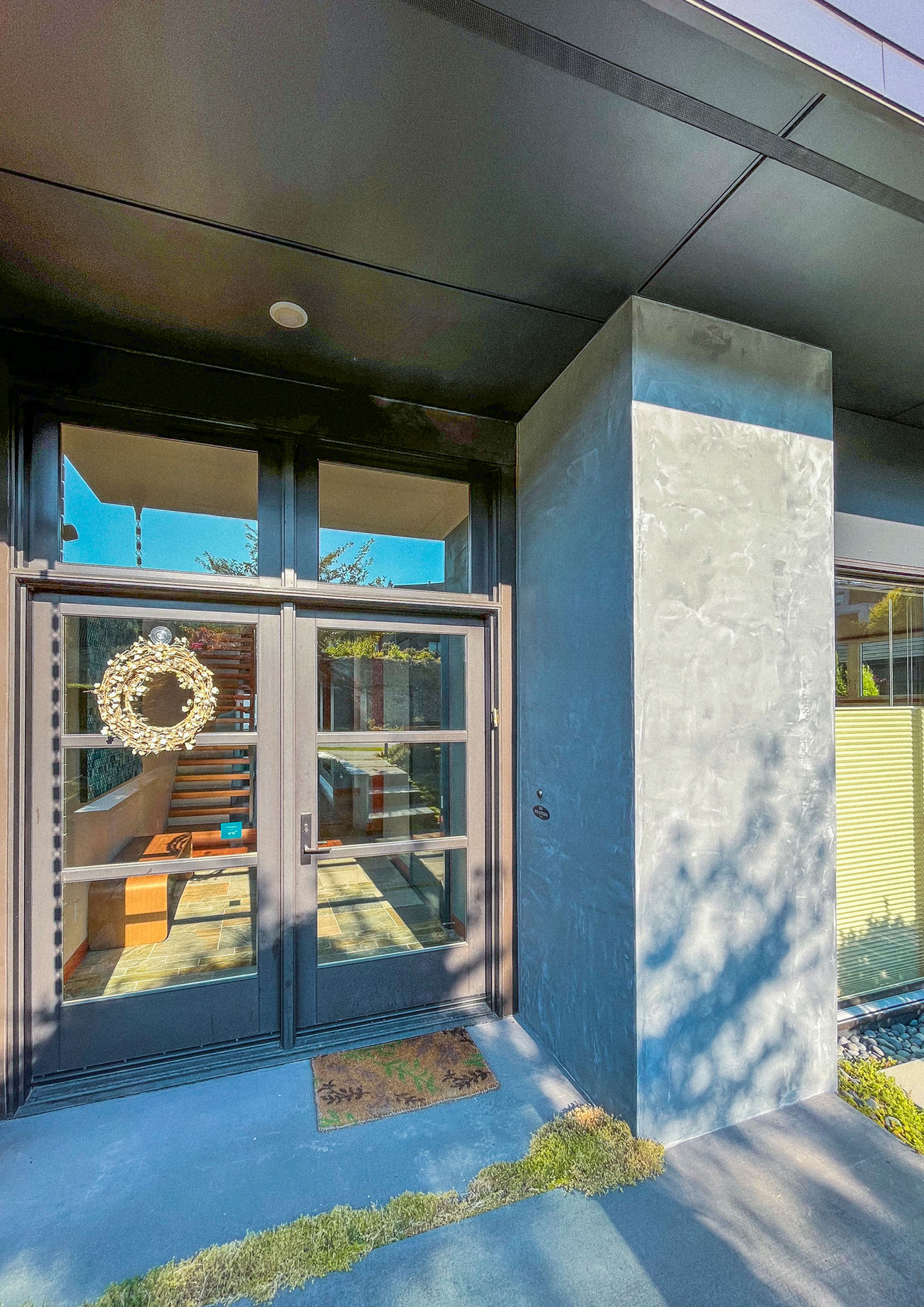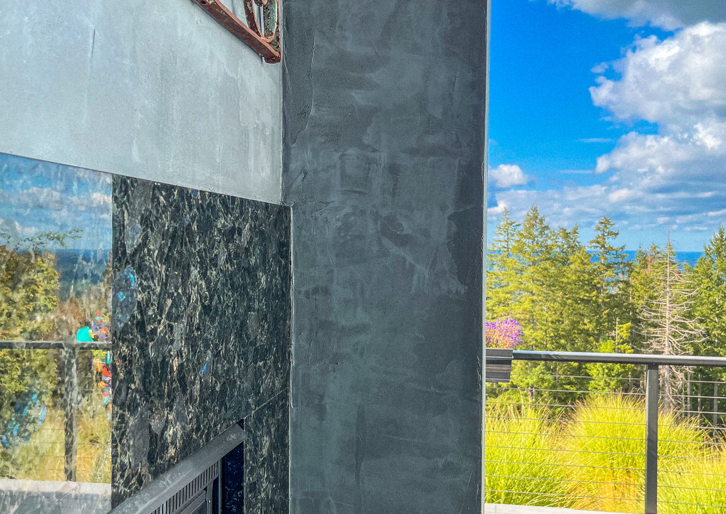 Facade facing with the Europlast material: The custom stucco with unusual transitions of color and texture emphasizes the crisp geometry of the home, making it both reserved and ultramodern.